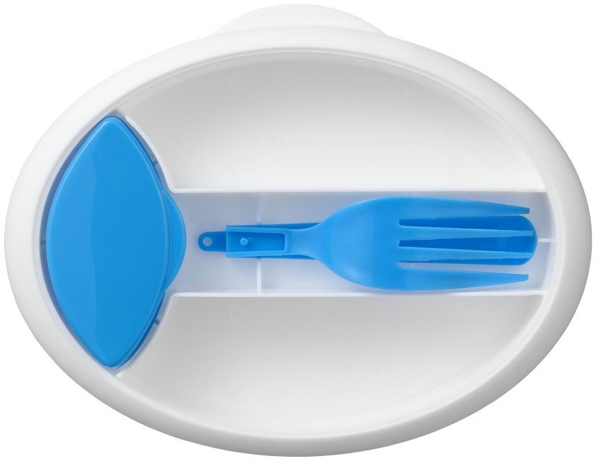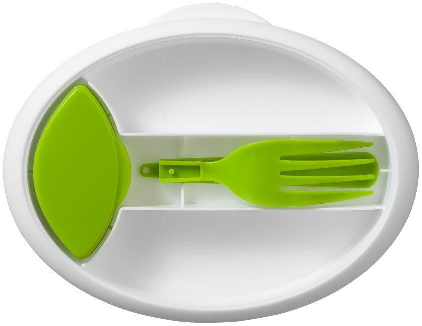 une fourchette pliable et un pot à condiment.