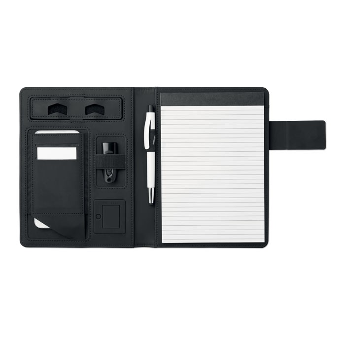 UGS: OM-MO9231-03Conférencier A5 en lin PU avec fermeture magnétique incluant un powerbank de 4000 mAh.