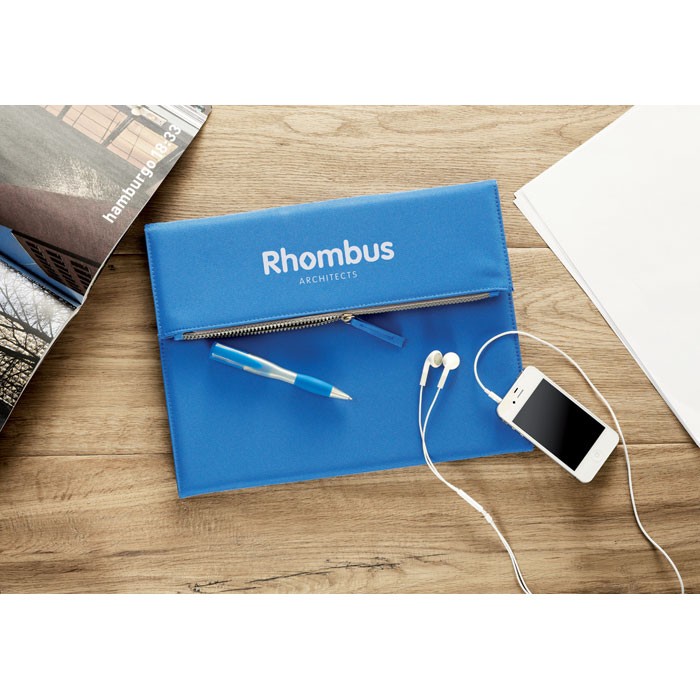 Le volet latéral fermé par une fermeture éclair fait office de trousse à crayons.