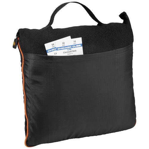 La couverture polaire compressible Phoenix avec logo personnalisé se distingue par son format pleine taille (152 × 124 cm) qui offre un impact visuel fort, ainsi que par sa capacité à se replier dans un fourre-tout compact (33 × 30 cm) avec sangle de transport et deux poches extérieures (33 × 25 cm).