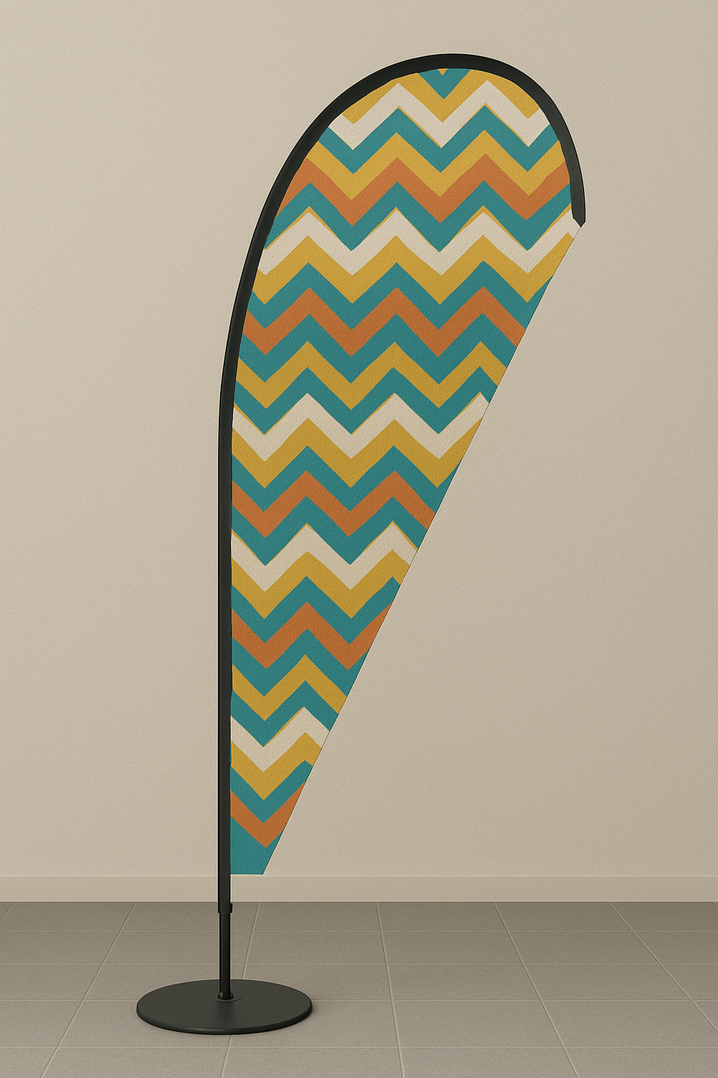 Une oriflamme publicitaire est un drapeau monté sur mât en forme de goutte, plume ou rectangle. Elle attire l’œil de loin et est caractérisée par la mise en valeur d’une marque ou d’un événement.