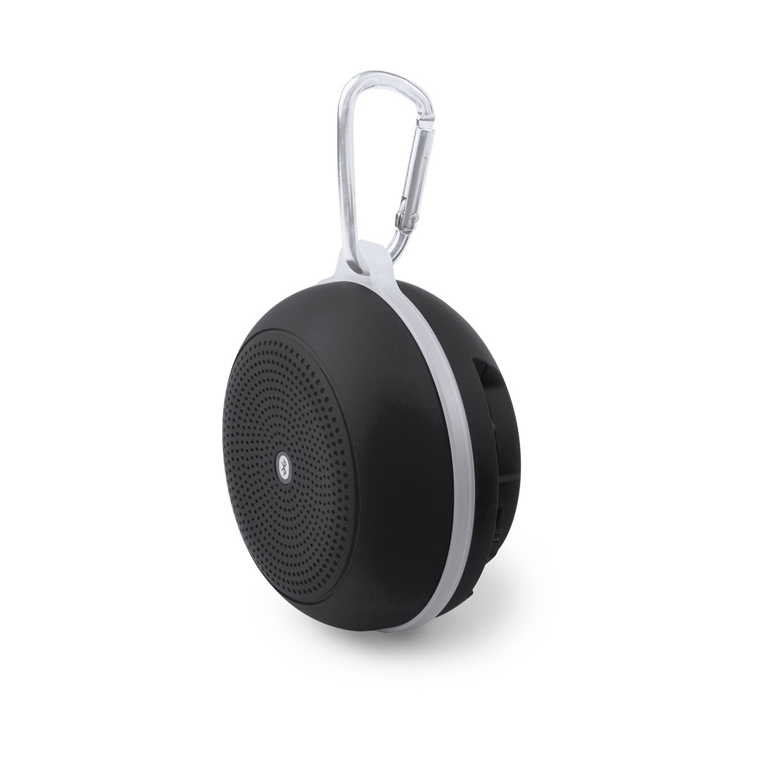 Enceinte bluetooth compacte. Design décontracté bicolore, avec mousqueton de transport en métal. Avec sa connexion Bluetooth 3.0, elle affiche une puissance de 3W avec une fonction mains libres, une entrée pour cartes mini SD jusqu´à 32 Go, une fonction radio FM, une entrée de ligne auxiliaire via une connexion jack 3,5 mm. Revêtement en gomme antidérapante sur le dessous. Compatible avec iOS et Android, Comprend un mini câble de chargement USB, un câble jack auxiliaire de 3,5 mm et est livrée dans une jolie boîte design.