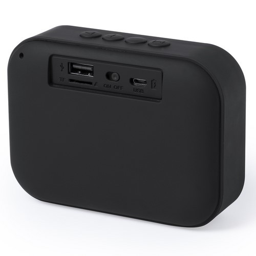 Enceinte Bluetooth avec une face en tissu polyester gris chiné et corps en gomme toucher doux. Pieds gommés antidérapants. D´une puissance de 3W, ce haut parleur est doté d´une fonction mains libres, d´une entrée pour cartes micro SD jusqu´à 32 Go. Compatible avec iOS et Android. Câble de chargement micro USB inclus. Livrée dans un boîte élégante.