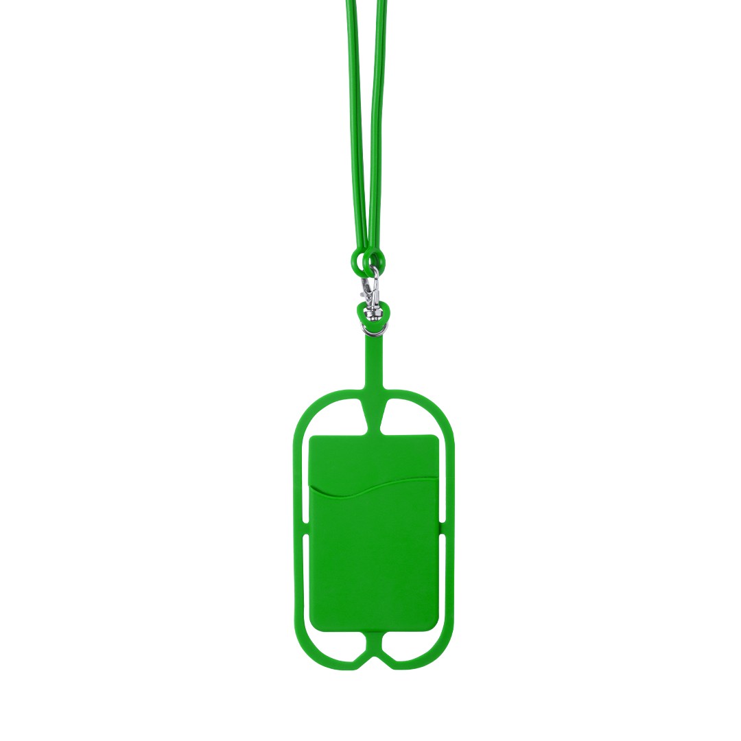 Lanyard pratique et confortable en silicone avec support intégré pour smartphone et porte-carte.