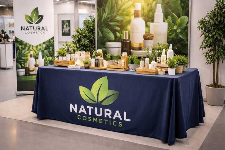 L’utilisation d’une nappe sur mesure est un excellent moyen d’améliorer l’identité visuelle de votre société lors de foires ou d’expositions professionnelles. Elle offre un arrière-plan idéal pour présenter votre logo, vos teintes et vos messages principaux. Lors d’expositions, de séminaires ou d’autres manifestations, adapter le design de vos nappes vous donne un avantage distinctif sur vos concurrents en attirant instantanément l’intérêt des participants. Ainsi, une nappe sur mesure se transforme en un outil de communication qui ne se limite pas simplement à embellir l’environnement, mais qui véhicule véritablement l’identité de votre marque.