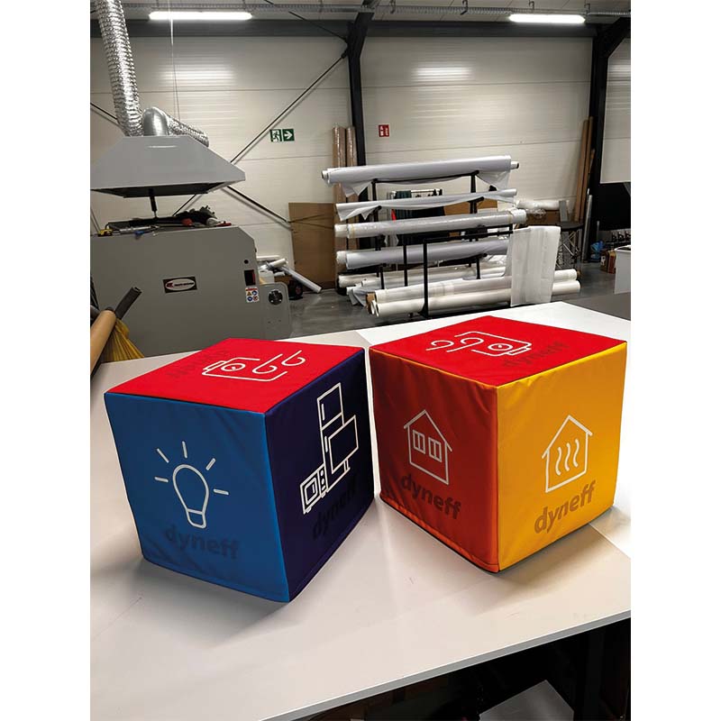 L’un des avantages majeurs de ce mobilier est sa possibilité de personnalisation totale. Par le biais de l’impression par sublimation, chaque meuble se transforme en un véritable moyen de communication personnalisé. Les motifs sont directement imprimés dans le fil du tissu, assurant des teintes vives et une remarquable résistance aux rayons UV.