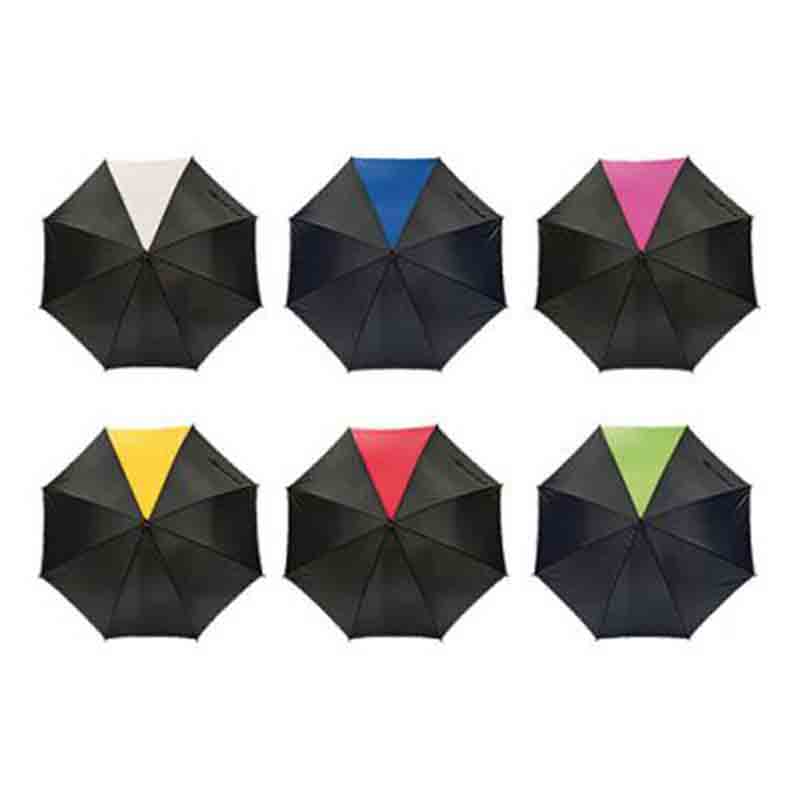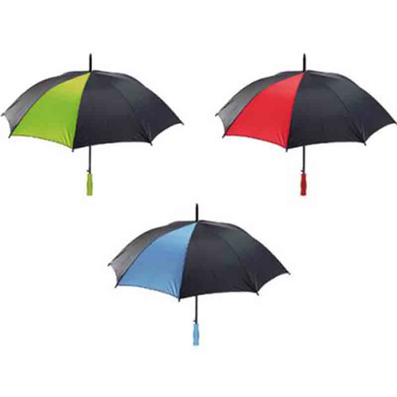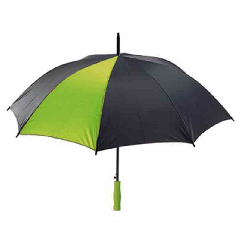 Parapluie golf, 8 panneaux. Manche et bout en métal, poignée EVA bicolore, embouts de baleines en plastique. Ouverture automatique.