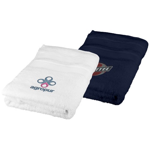 La serviette de bain Eastport 50 x 70 cm personnalisée est réalisée en coton 100 % naturel, 550 g/m², offrant un équilibre parfait entre absorption, douceur et durabilité. Elle est disponible en blanc et bleu marine, couleurs idéales pour mettre en valeur un logo brodé. La serviette est dotée d’un bord luxueux des deux côtés, renforçant sa solidité et son aspect esthétique.