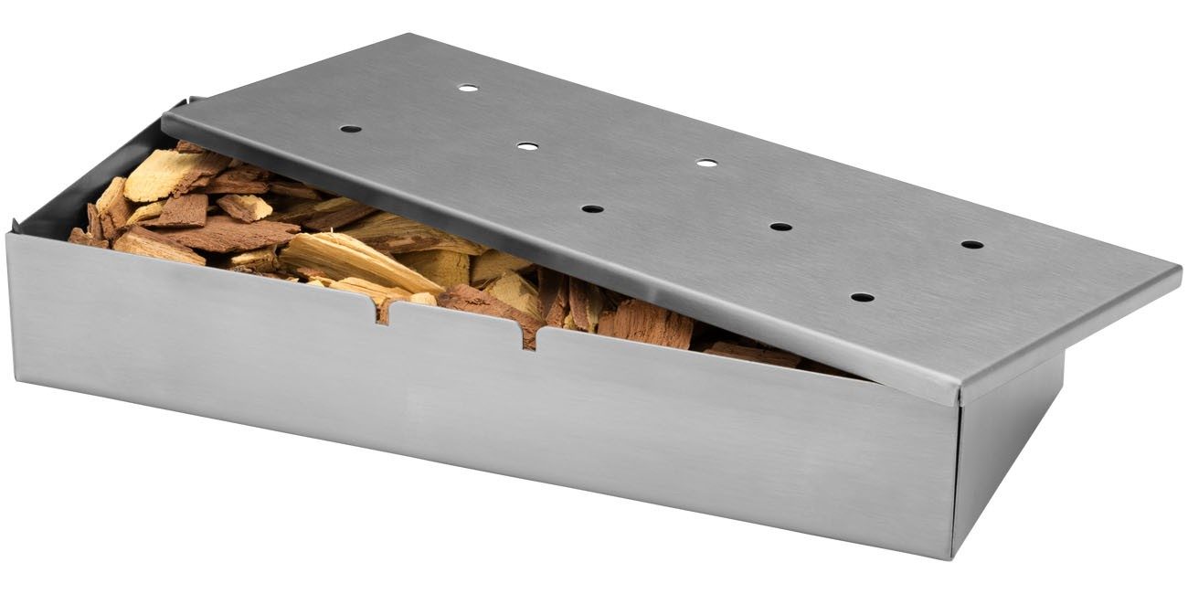 Si vous mettez des copeaux de bois dans la boîte métal et que vous laissez la boîte sur le grill de votre barbecue (dim 23 x 9,5 x 4 cm), votre viande, votre volaille, ou votre poisson auront un goût fumé unique.