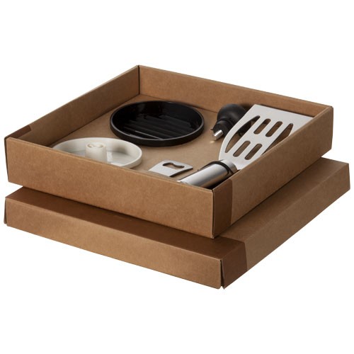 d’un presse pour burger et d’un ouvre bouteille.