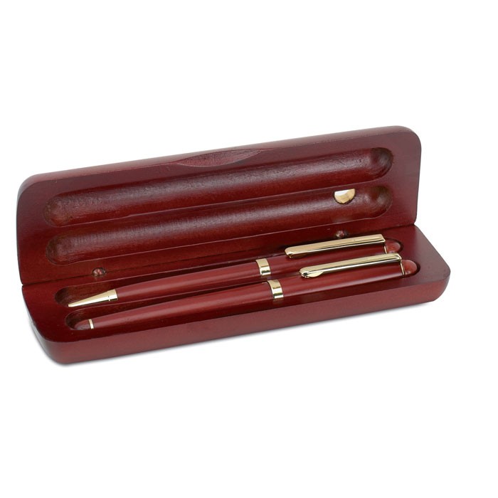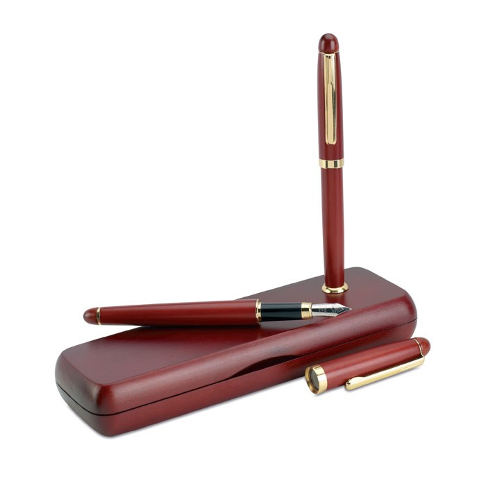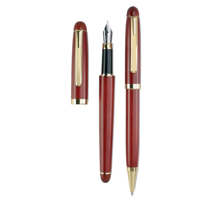 Set luxueux bois de rose: stylo bille et plume