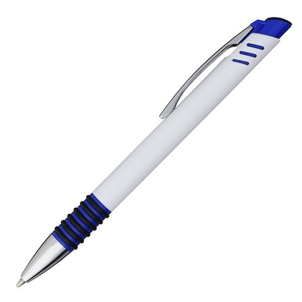 Stylo à bille en plastique avec poignée en métal.