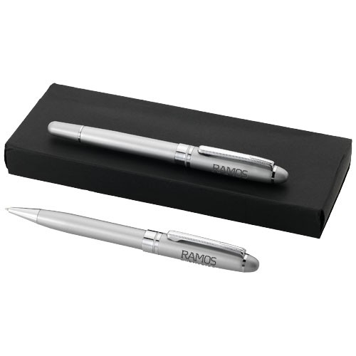 Stylo à bille et roller dans une boite cadeau en carton.