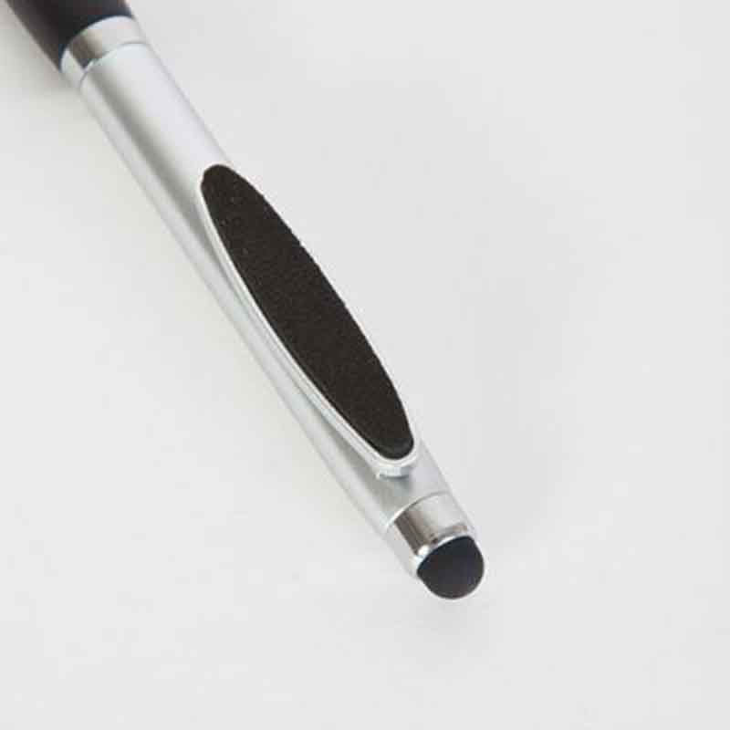 Stylo bille/stylet/nettoyeur écran argent/bleu