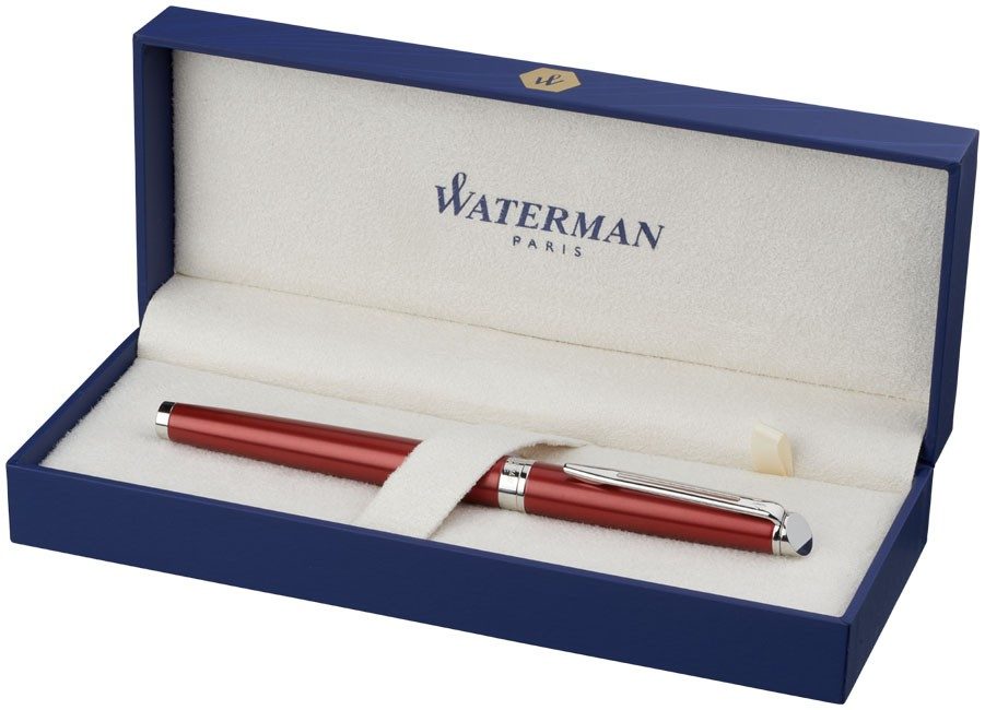 Disponible en trois couleurs à la mode : rouge métallisé contemporain, rose corail et bleu métallisé. Présentation dans un coffret cadeau Waterman.
