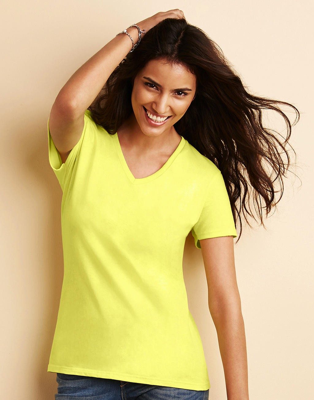 Le tee-shirt femme col V Premium est un compromis entre une coupe ajustée et une taille ample. En effet, il bénéficie d’une découpe semi-cintrée qui souligne vos formes sans les marquer. Ainsi, il convient parfaitement pour les femmes qui n’osent pas trop afficher leurs courbes.