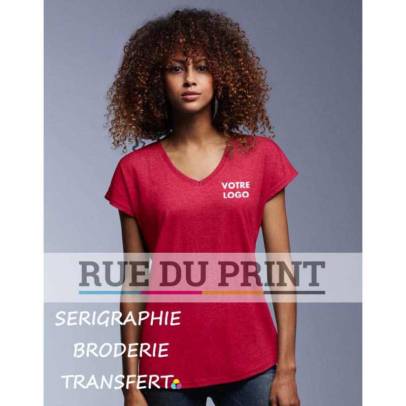 Le tee-shirt femme col V Tri-Blend est un haut destiné à apporter une meilleure aération aux sportives. Avec son col en V également appelé col tunisien, ce vêtement vous épargnera des grosses chaleurs durant l’été. En outre, ce décolleté mettra votre poitrine en valeur.