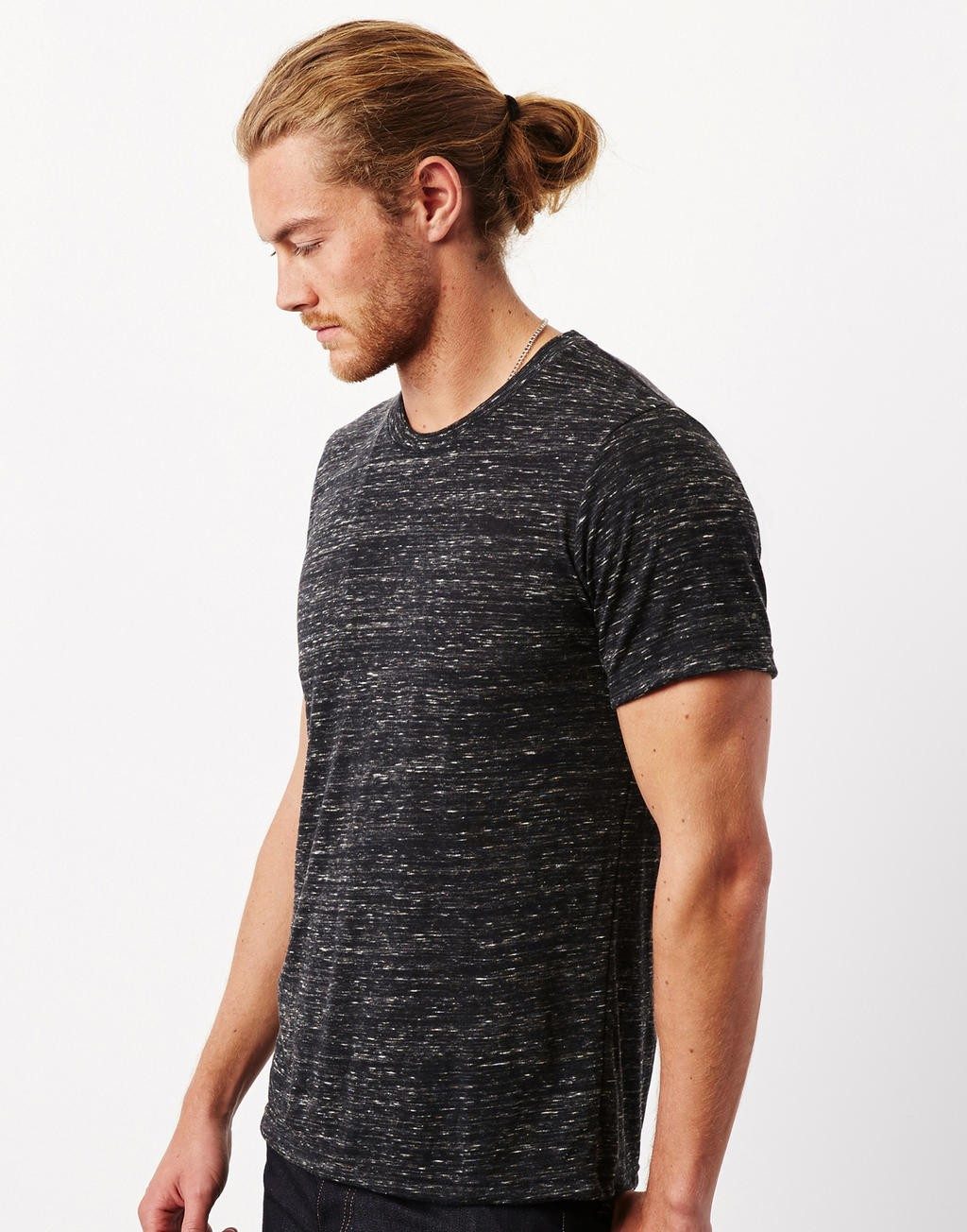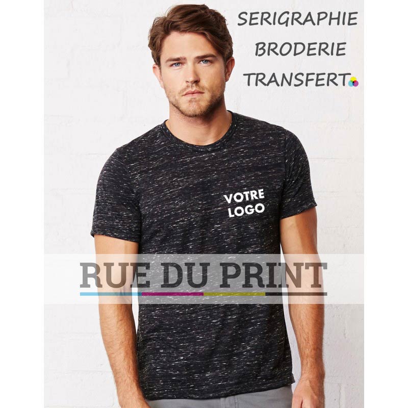 Voici un modèle de t-shirt qui se décline en plusieurs coloris dont des nuances de bleu, de marbré et de fluo. Il s’agit du tee-shirt Unisex Poly. Il est disponible dans deux types de compositions tissulaires. Le premier intègre 52% de coton et 48% de polyester. Le coton a une proportion plus importante car le but du concepteur est de donner de la légèreté et de la résistance à ce haut. Quant au deuxième tissu, il est composé de 50% de polyester, de 25% de coton et de 25% de viscose. Ces matières procurent une grande respirabilité et souplesse au vêtement. Ainsi, il s’adapte bien aux activités nécessitant de réaliser de larges mouvements.