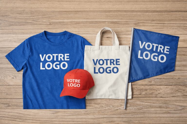 Un textile publicitaire doit rester simple et clair pour être efficace. Un logo distinctif, des teintes harmonisées à l’identité visuelle et un message concis conduisent à un résultat de qualité professionnelle.