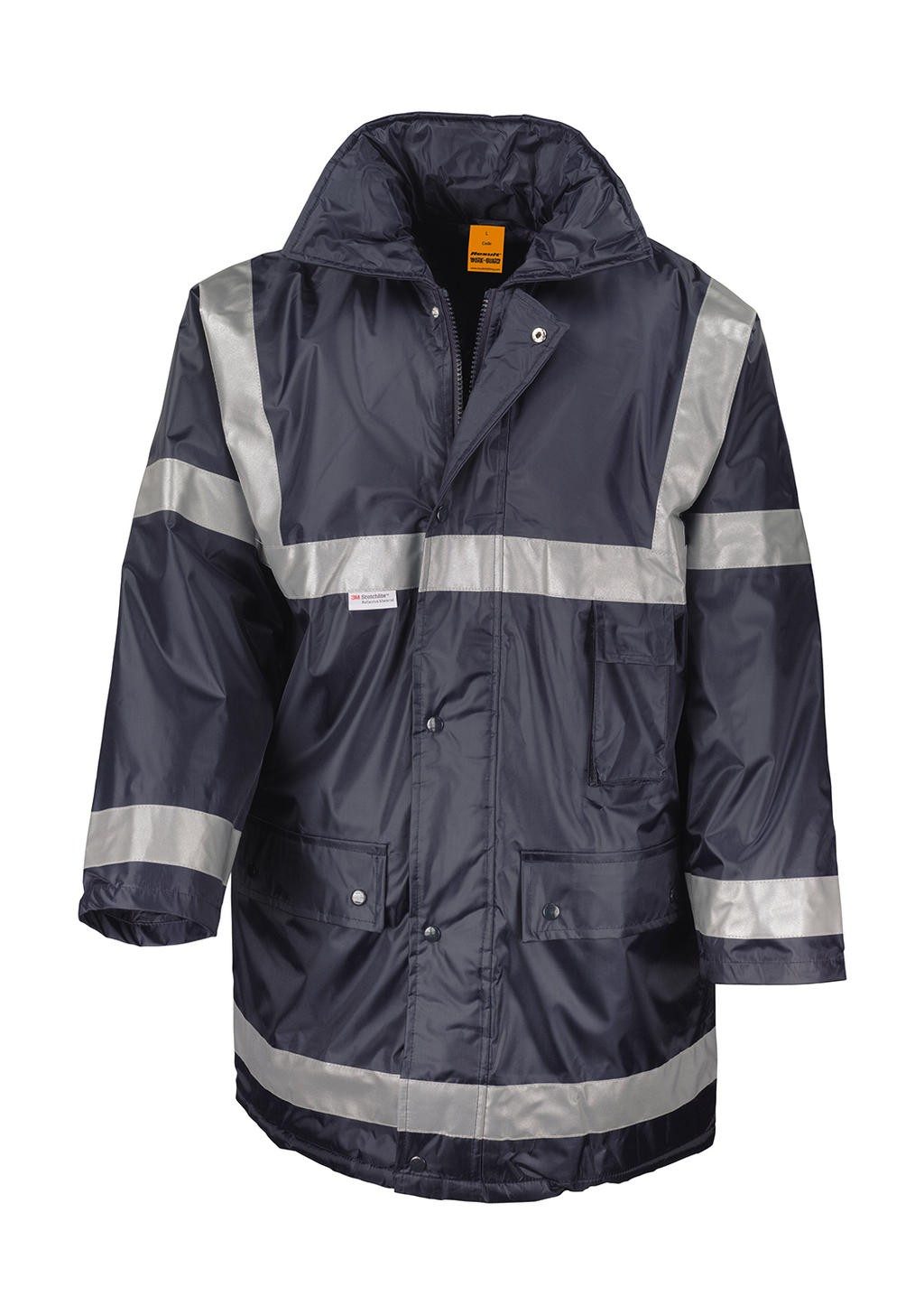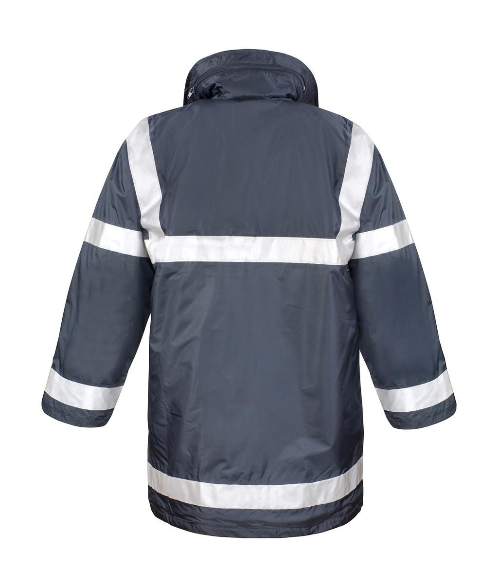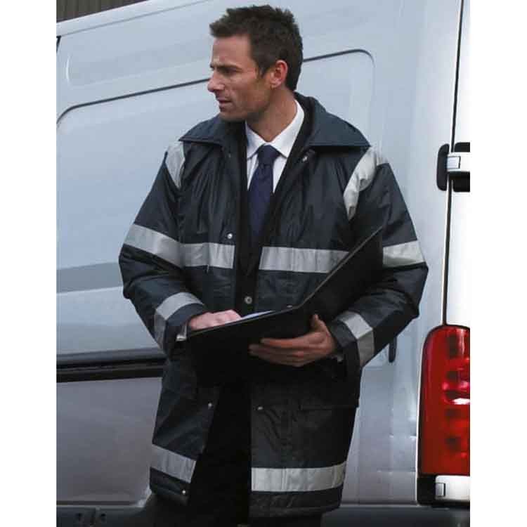 Les parkas font partie des vêtements les plus efficaces pour se protéger contre la pluie. Sa coupe longue jusqu’aux genoux assure une excellente couverture lors d’une grande averse. En pratique, ce modèle de veste avec bandes réfléchissantes est surtout porté par les agents de sécurité et de contrôle qui travaillent durant la nuit.